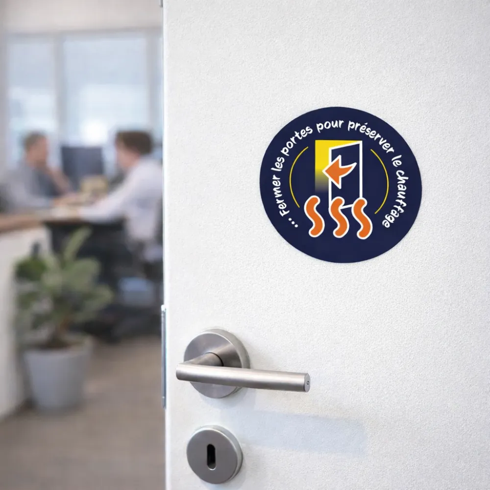 En incitant à fermer les portes, cet autocollant de prévention chauffage contribue directement à : Limiter les déperditions, thermiques, Améliorer le confort intérieur, Réduire la facture énergétique, Renforcer votre image écoresponsable. C’est un petit investissement pour un impact durable, aussi bien économique qu’environnemental.