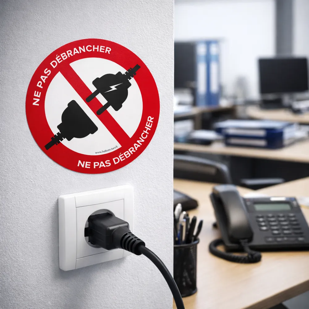 Dans de nombreux environnements, une simple prise débranchée peut avoir de lourdes conséquences : perte de connexion internet, arrêt d’un appareil médical, coupure de serveur ou panne d’équipement sensible. Ce sticker autocollant de sécurité électrique agit comme un rappel visuel immédiat. Son message explicite réduit considérablement les erreurs humaines et améliore la prévention au quotidien. Conçu pour être lisible en un coup d’œil, il attire l’attention sans être agressif. C’est un outil simple, économique et extrêmement efficace pour sécuriser vos installations électriques.