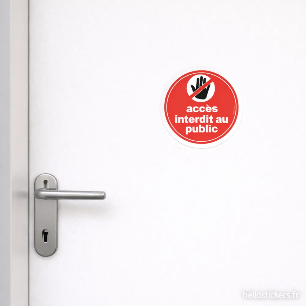 Ce sticker “accès interdit au public” est conçu pour être compris en un coup d’œil, même par des personnes ne parlant pas français.