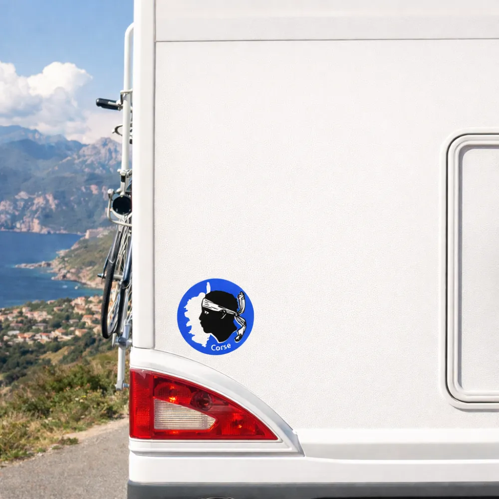Stickers autocollant sur la Corse avec la tête de Maure et la carte de la Corse.