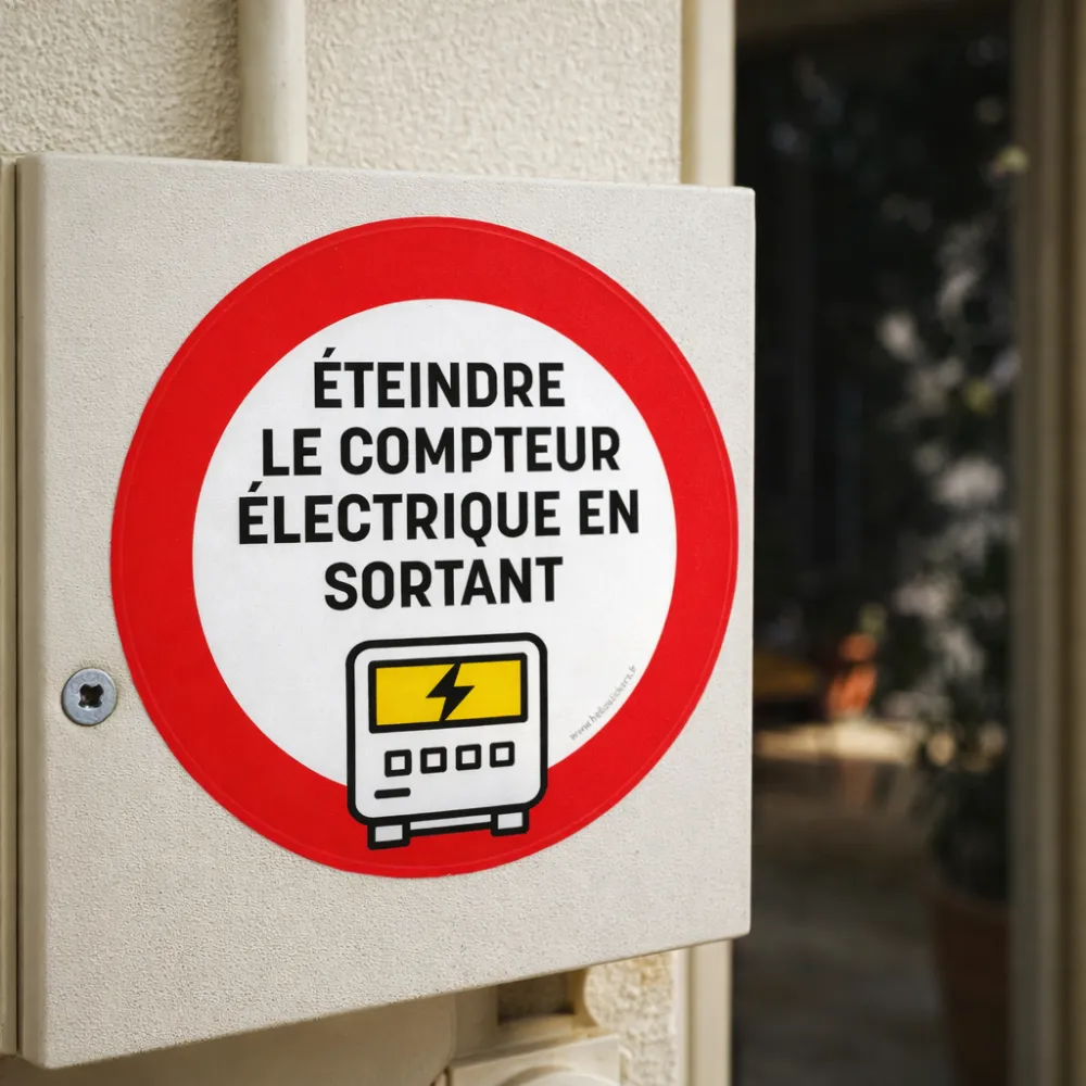 En quelques secondes, ton message de prévention est en place. Que ce soit pour un usage personnel ou professionnel, ce sticker “éteindre le compteur électrique en sortant” devient un allié sécurité incontournable. Adoptez dès maintenant ce sticker autocollant et transforme un simple rappel en réflexe sécurité.