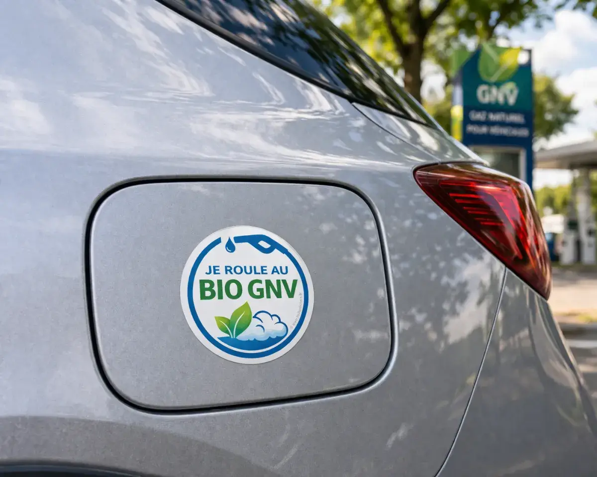 Sticker « Je roule au BIO GNV » – autocollant écologique voiture pour afficher votre engagement durable avec style. Affichez vos convictions et faites passer un message fort sur la route. Commandez dès maintenant votre sticker « Je roule au BIO GNV » et roulez engagé !